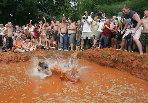 A man participates in the mudpit belly flop at the 2007 Summer Redneck Games in East Dublin, Georgia, July 7, 2007. The Redneck Games began as a joke in response to the 1996 Olympic Games in Atlanta. [Reuters]
