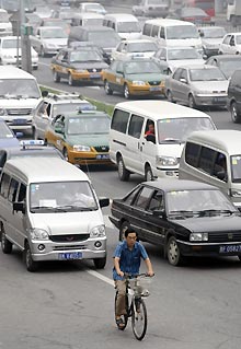 Vehicles are caught in heavy traffic during rush hour in Beijing, August 7, 2007. [Reuters]