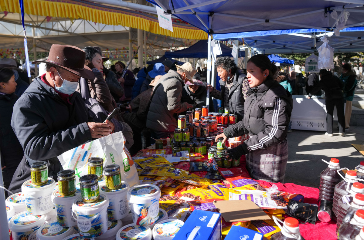 People select products during a supply and marketing fair at a park in Lhasa, Southwest China's Xizang autonomous region, Dec 10, 2025. [Photo/Xinhua]