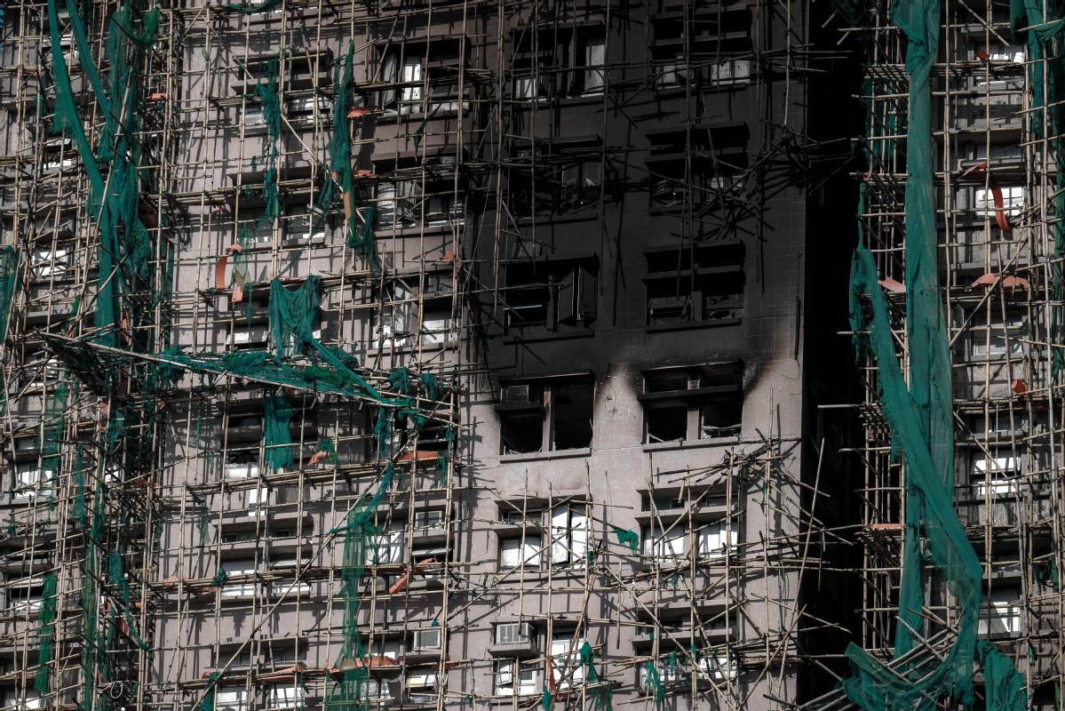 The blaze, which broke out at Wang Fuk Court on Nov 26, has killed at least 160 people as of Thursday, and seven out of the eight blocks in the court are damaged. Six people are still missing, and all of those injured are now in stable condition.