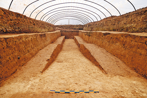 A beaten floor, likely formed by long-term human activities, exposed within the excavation trench.[Photo provided to China Daily]