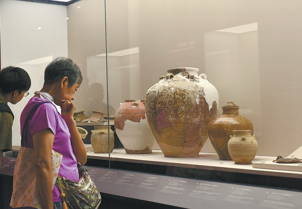 Visitors study relics salvaged from the Nanhai One shipwreck at Hong Kong Heritage Discovery Centre in Hong Kong in August 2024. [Photo provided to CHINA DAILY]