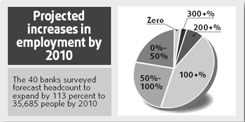 Among them, four banks predict an annual growth rate of more than 100 percent and 10 anticipate a 50-100 percent growth in 2007.
