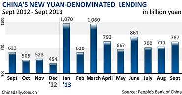 China's new yuan-denominated lending in the first three quarters this year reached 7.28 trillion yuan ($1.18 trillion), an increase of 557 billion yuan from a year earlier.