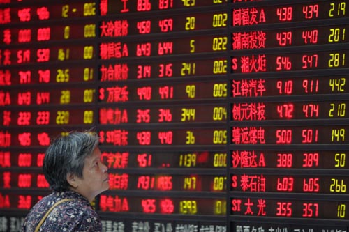 A stockholder watches the screen on the wall in a security company in Nanjing, East China's Jiangsu Province, October 9, 2006. [newsphoto]