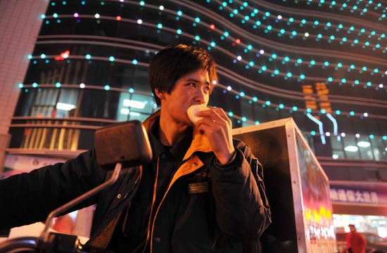Wang is a delivery guy who works for China Post in Yinchuan city, Ningxia Hui autonomous region. His workload was increased significantly on Nov 11 since the online retailers did promotions and made the day 'online shopping festival'.