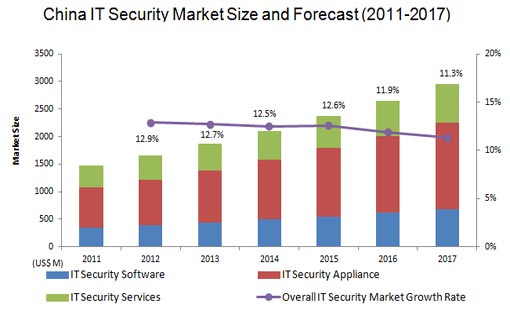 IDC expects China IT security market to experience a year-on-year growth of 12.7% in 2013 to reach a market size of $1,830 million.
