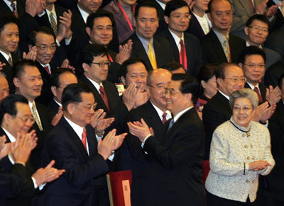 Chinese President Hu Jintao (2nd-R), Lien Chan