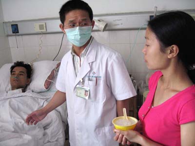 A patient receives treatment in a local hospital in Guangzhou, capital city of south's China Guangdong province May 15, 2006. The patient shows symptoms of acute renal failure and has been found to have taken a fake injection produced by a chemical works in Qiqihar,  northeast China's Heilongjiang Provinc. The concerfeit medicine have led to four deaths. [Xinhua]
