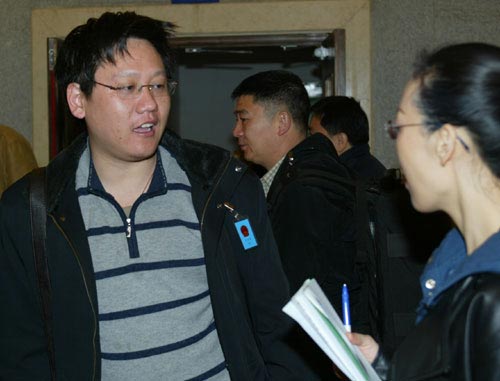 Jiangsu province is interviewed by a reporter after he arrives at Beijing