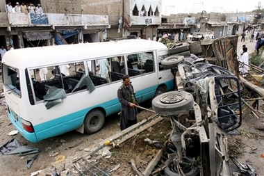 There was no immediate word on how many Chinese workers were killed or injured in the attack, the latest in a slew of assaults targeting overseas Chinese nationals. The convoy was passing though the main bazaar in Hub, a town in Baluchistan province near the port city of Karachi, when a moving car blew up next to a police vehicle, officials said. Hub Police Chief Ghulam Mohammed Thaib said 29 people were killed, including seven police. About 30 other people were wounded, some critically. "It was laden with very heavy explosives but due to our spacing and our security measures, Allah has been very kind," said Maj. Gen. Saleem Nawaz, a commander of Pakistan's paramilitary Frontier Constabulary. The police "sacrificed their lives and the Chinese friends were absolutely safe," Nawaz said on Dawn News television. The Chinese citizens worked at a lead extraction plant in Dudhar in Baluchistan and were temporarily leaving the area for Karachi due to security concerns, police said. Some officials suggested the bomb was remote-controlled. But Thaib and Nawaz, whose men also were guarding the minibus carrying some 10 Chinese technicians and engineers, said it was a suicide attack. Television reports showed how the blast ripped off the front of several roadside shops. Several damaged cars and buses lay rammed into one another among a tangle of bricks and clothing. In the northwest, a suicide car bomber detonated his explosives when guards prevented him from entering the parade ground of the police academy in Hangu, 45 miles southwest of Peshawar. The bomber killed six bystanders and one policeman, and another 24 people were wounded, academy chief Attaullah Wazir said. Suicide attacks, bombings and shootings blamed on Islamic