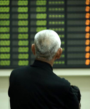 An investor stands in front of an electronic board at a brokerage in Dalian, Liaoning Province, June 10, 2008. China's stocks continued to slide on Wednesday, extending an 8 percent slump on the previous session, as inflationary concerns prompted a fresh round of panic selling. [Asianewsphoto]