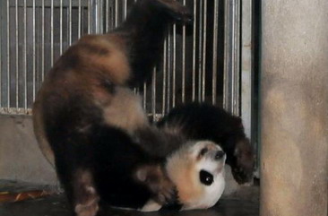 Cute pandas rolling over in new home