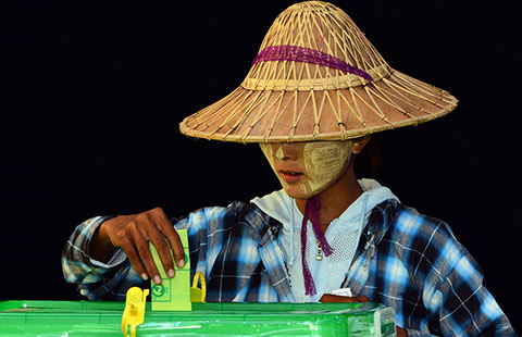 A Belgian artist delights a Chinese audience member after a performance at the 4th Quanzhou International Puppet Festival in Quanzhou, Fujian province, on Monday. Twenty-five troupes of puppeteers from 14 countries and regions joined the festival, which ends on Friday. [Photo by Hu Meidong/China Daily] |