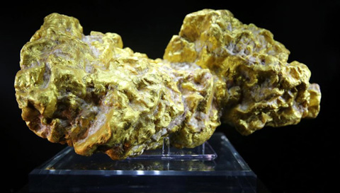 The world's biggest native gold, which originated in Australia, debuts at the 2015 China International Jewellery Fair on Saturday. [Photo/Chinanews.com] |