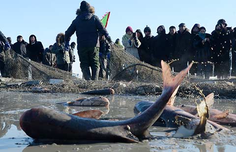 A working staff makes snow sculpture at Hengcheng resort in Yinchuan, Northwest China's Ningxia Hui autonomous region, Jan 8, 2016. The 4th snow and lights festival opened in Yinchuan on Friday. [Photo/Xinhua]