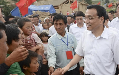 Premier Li Keqiang on Sunday called for more support for farmers and post-quake reconstruction during his visit to a rural credit cooperative in Minxian county, Gansu province. Premier: Together, we will rebuild