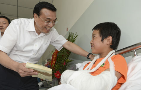 Premier Li Keqiang visited a remote village hit hard by an earthquake measuring 6.6 on the Richter scale on July 22 in Northwest China's Gansu province.