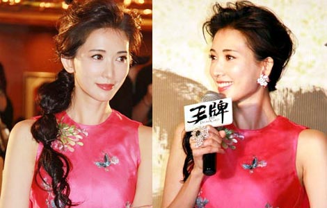 A teacher gives children a red dot on their foreheads to open their "wisdom eye" during the First Writing Ceremony at the Confucius Temple in Jilin, Northeast China's Jilin province, June 19, 2014. More than 100 pre-school children participated in the traditional ceremony. [Photo by Wang Mingming/Asianewsphoto]