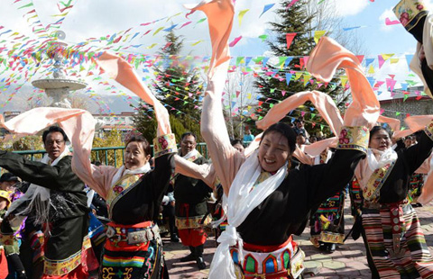 Thai Princess Maha Chakri Sirindhorn (C) attends the opening ceremony of a Chinese Lunar New Year celebration at the Chinatown of Bangkok, Thailand, Feb 19, 2015. People celebrated the Chinese Lunar New Year in Bangkok's Chinatown on Thursday. [Photo/Xinhua]