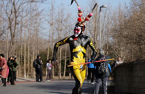 More than 3,000 devotees from both sides of the Taiwan Straits attended the worship ceremony of Jade Emperor of Heaven at Tianbao Yuzun Palace in Zhangzhou city of Southeast China's Fujian province in the early morning of Feb 27, 2015. [Photo/Chinanews.com]