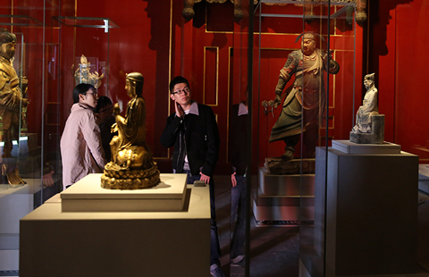 Twelve auctions in 7 categories, such as contemporary Chinese ink and works on paper, Chinese and western wine, watches, jade and so on, will be held in Grand Hyatt Hong Kong from Oct. 5 to 6, including more than 2000 items with an estimated value of 700 million Hong Kong dollars (about 90.3 million USD). A visitor looks at a painting during a preview of Poly Auction Hong Kong's 2015 fall auctions. [Photo/Xinhua] |