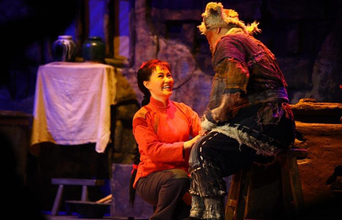 A scene from the remake of The White Haired Girl. Theatrical remake of The White Haired Girl, a story about a young woman's inner struggle in a time of difficulty, will begin touring nationwide with the first show in Yan'an, Northwest China's Shaanxi province, on Nov 6, 2015. The opera, composed by Yan Jinxuan, was first performed in 1945 with artist Wang Kun in the leading role. Several remakes have been produced thereafter, including a Peking opera performance in 1958, a ballet version in 1965, as well as an opera starring soprano Guo Lanying and a namesake film adaptation in 1950. This year marks the 70th anniversary since the birth of The White Haired Girl, the first play China composed after Chairman Mao Zedong's speech at the Yan'an Forum on Literature and Art in 1942. [Photo/cnwest.com]