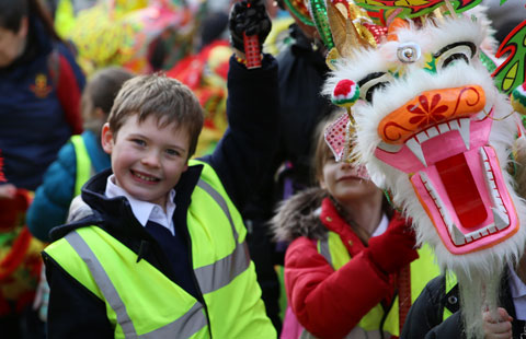 People perform dragon dance in the flames of firecrackers in Binyang county of South China's Guangxi Zhuang autonomous region, Feb 16, 2016. The Binyang-style dance is a derivative of traditional dragon dance in which performers hold dragon on poles and walk through floods of firecrackers. The dance was listed as a state intangible cultural heritage in 2008. [Photo/Xinhua]