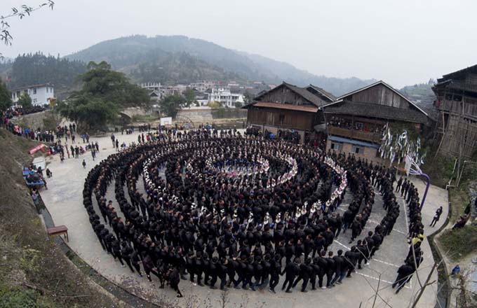A ceremony for welcoming the "God of Wealth" is held in front of the former residence of Shen Wansan, the richest man living in south of the Yangtze River region during the Ming Dynasty (AD 1368-1644), in East China's Zhouzhuang, dubbed as the best water village in China, on Feb 1, 2017. Feb 1st is the fifth day of the Chinese New Year, which is believed to be the birthday of the "God of Wealth". The "God of Wealth" is believed to bring fortune to people. [Photo/Chinanews.com] |