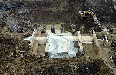 These pagodas were likely to be made based on the Bao'en Temple (Temple of Gratitude) in east China's Nanjing city. They were constructed with nine upper storeys, each with the upward-curving tiled eaves typical of roofs in southern China. They were exquisite with green tiles, underglaze blue walls and iron red enamel and gilt in imari style.