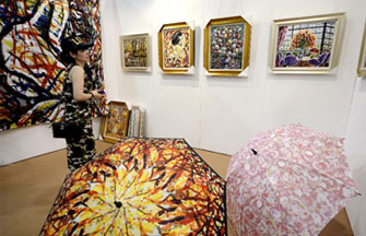 British graffiti artist Banksy's artworks are displayed at Julien's Auctions in Los Angeles, in April. [Photo/Agencies]
