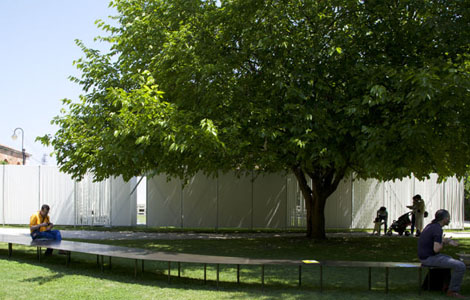 Three Chinese architecture firms applied recyclable materials to construct a Chinese courtyard inside an Oil Depot and Virgin Garden, providing a relaxing atmosphere in which visitors can rest.