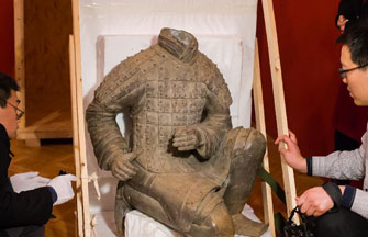 Chow, who looked much younger than his 76 years, wore his trademark round glasses with bold, black frames. He left his favorite custom Hermes suit in the hotel, arriving instead in a T-shirt and jeans dotted with paint splotches.