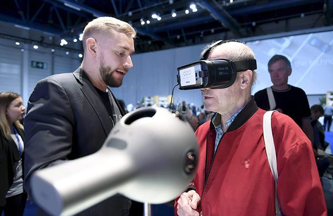 Alex Wer, also known as the king of pumpkin art, takes a photo with his carved pumpkin on Oct 22, 2017. [Photo/IC] |