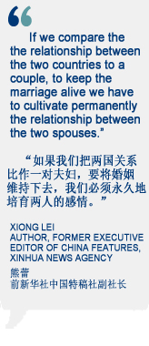 Xiong Lei: And also if we compare the relationship of two countries like a couple, to keep a marriage alive, you have to cultivate permanently the relationships between the two spouses.
