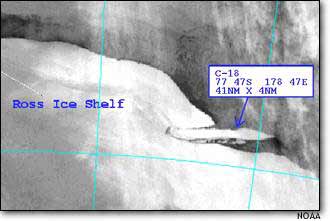 The collapse on the Ross ice shelf -- in the Ross Sea -- is about 41 nautical miles long and 4 nautical miles wide.