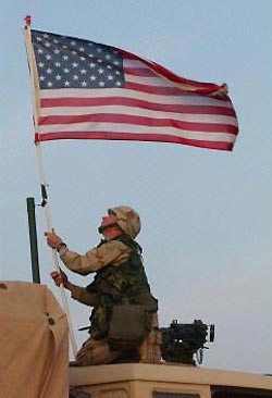 A US Marine has been killed in Iraq, becoming the first reported combat death of the war, defense officials said Friday. The slain soldier, of the 1st Marine Expeditionary Force, was moving in the ground assault in southern Iraq, said Lt. Col. Neal Peckham, a British military spokesman in Kuwait. Peckham said he had no further details. MSNBC cable network reported that the soldier was felled by Iraqi gunfire during the advance on the Rumeila oil field. The incident came hours after eight British and four US soldiers died in a US Marine helicopter crash. A British military spokesman said the crash was an accident. American and British troops encountered both hostile fire and white flags in their race across the desert, with some 200 Iraqi soldiers surrendering to the US 15th Marine Expeditionary Unit just over an hour after it crossed the border from northern Kuwait. Holding back on a massive air assault, the allied force has been using pinpoint airstrikes and a lightning-fast ground assault as efforts intensify to get Iraqi soldiers, even the Republican Guard units considered loyal to Saddam Hussein, to give up. Defense Secretary Donald H. Rumsfeld said direct talks were taking place with Iraqi forces and it was possible the "full force and fury of a war" could be averted. "There are communications in every conceivable mode and method, public and private," he said after meeting lawmakers Thursday night. A Democratic lawmaker expressed similar optimism. "The behavior of those who've not surrendered would suggest that they might," Rep. Robert Andrews, D-N.J., said after being briefed by military officials. American officials said they had strong indications no one was in charge of Iraq's government and armed forces. Military officials said no hostile fire was reported in the area of the CH-46 Sea Knight crash, which was in Kuwait about 9 miles south of the Iraqi border town of Umm Qasr. The crash happened as US Army and Marine units, joined by their British comrades in arms, surged across the Kuwaiti border into southern Iraq on Thursday and Friday, working at first to secure the region's oil wells, several of which had been set afire. Opening the ground action, Marine expedition and Army special forces were sent into Iraq to put forces in a better position to protect the oil-rich Basra region after Iraqis set a small number of oil wells on fire, military officials said. Later, the bulk of the Army's 3rd Infantry Division and the Marine Corps' 1st Expeditionary Force rumbled across the border into Iraq. Many of the troops passed burning oil wells that sent plumes of acrid, black smoke into the dusty desert sky. Small numbers of US and British special forces were operating surreptitiously in other parts of the country and US war planes stepped up attacks on Iraqi air defenses in the north and south in hopes of making it easier and safer for coalition aircraft when the massive aerial assault begins, officials said. Two of the officials said Thursday's strikes involved a smaller number of Tomahawks than Wednesday's opening volley, which numbered approximately 40. Officials said the surprise attack targeting Saddam benefited from electronic spying and other intelligence, special military operations and changes in technology that permitted military chiefs to more quickly reconfigure the cruise missiles for a special, pinpointed attack. Coordination has never been greater among the Army, Navy, Air Force and Marine Corps, said Air Force Chief of Staff Gen. John Jumper. Rumsfeld warned Iraqis to stay in their homes and listen to coalition radio broadcasts. "The day of your liberation may soon be at hand," Rumsfeld said. "The days of the Saddam Hussein regime are numbered. We continue to feel there is no need for a broader conflict if the Iraqi leaders act to save themselves and to prevent such further conflict." (AP)