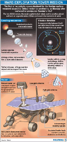 The second, MER-B, dubbed Opportunity, is scheduled to launch on June 25 and to land on January 25, 2004 in an area of Mars known as the Meridiani Planum.