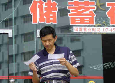 A man stands outside a savings bank in Shanghai. Domestic commercial banks and financial watchdogs need to make more of an effort to cut banks' Non-Performing Loans, to improve the banking industry, experts urged. [newsphoto.com.cn]