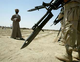 troops during a demonstration in Najaf, around 150 km south of Baghdad