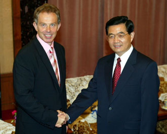 During the meeting with Wen, Blair said that in the past six years the "one country, two systems'' policy has yielded very good results, noting that the British side appreciates the Chinese side's treatment of recent problems in the Hong Kong Special Administrative Region (SAR). Britain hopes the Chinese side will find a way to maintain Hong Kong's stability and pledges to make its own efforts to this end, Blair added. A large number of Hong Kong residents took to the streets on July 1, the sixth anniversary of Hong Kong's return to China, to express their concerns on the proposed legislation of the National Security Bill which is based on Article 23 of the Basic Law of the Hong Kong SAR. Hong Kong SAR Chief Executive Tung Chee-hwa said on July 5 that the Hong Kong SAR government has decided to introduce three amendments to the draft National Security Bill. Wen said yesterday that facts have proven that the practice of "one country, two systems'' has been implemented successfully in Hong Kong, and has won international acclaim. He said he hoped that "concerned countries'' would do more to support Hong Kong's stability and development. Wen said that in the past more than six years, the Chinese Government has, strictly in accordance with the Basic Law of the Hong Kong SAR, completely implemented the principles of "one country, two systems,'' "Hong Kong people governing Hong Kong,'' and a high degree of autonomy. Hong Kong maintains economic stability and development although it suffered a lot from the Asian financial crisis, the global economic slowdown and SARS, said Wen, adding that Hong Kong people's legal rights and freedoms are fully guaranteed. He stressed that a stable and prosperous Hong Kong is not only in the interests of all Chinese people including Hong Kong compatriots, but also conducive to foreign interests in Hong Kong. On bilateral relations, Wen said Sino-British relations have developed noticeably in recent years and bilateral co-operation between the two countries in various areas has also proven fruitful. The administrative power of Hong Kong has smoothly returned to China and an all-round Sino-British partnership has been forged, the premier said. Wen also put forward four suggestions on the future development of Sino-British relations: To maintain high-level mutual visits of government officials, to expand trade and economic co-operation, to enhance cultural and educational exchanges and to resolve each other's discrepancies and differences through consultation and dialogue. Meanwhile, Wen reiterated China's stance on the issues concerning Taiwan and Tibet and exchanged views with Blair on international issues of common concern. Blair said contacts with Chinese personalities from various circles have given him a better understanding of the one-China policy, noting that the British side would adhere to the policy when dealing with relevant issues. In view of the present complicated and changeable international situation, Wen said it is necessary and urgent for China and Britain, both permanent members of the United Nations Security Council, to strengthen co-operation either for the maintenance of world peace or for economic development.
