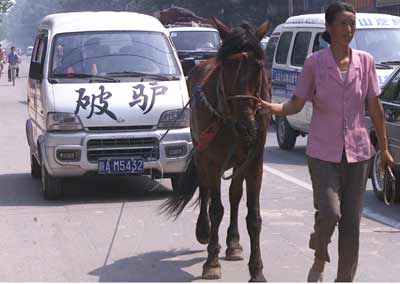 Monday was a sunny day in Xi'an, a city in western China which is world famous for its terro-cotta warriors. On a crowded street in Baqiao District in northern Xi'an, a middle-aged woman, Wang Bohu, in not-so-elegant clothes, pulled a donkey dragging not a cart, but a minibus.