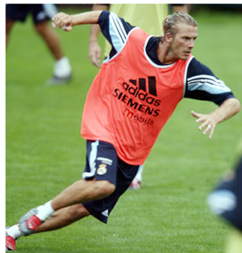 | | |  | | | Real Madrid's midfielder David Beckham at a training session at Hongta Sports Centre in Kunming, the capital of China's southwestern province of Yunnan, July 26, 2003. Real Madrid, with newly added icon Beckham, are on a two-week Asian tour including Japan and Hong Kong.[Reuters] | | | | | | | | | |