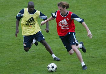 | | |  | | | Steve Mcmanaman (red) and Flavio Conceicao competes for the ball in a trainning match at Kunming's Yunnan Tuodong Stadium,Southwest China's Yunnan Province, July 29, 2003. Real Madrid is one a two-week Asian tour including China and Japan and Thailand. [newsphoto.com.cn] | | | | | | | | | |