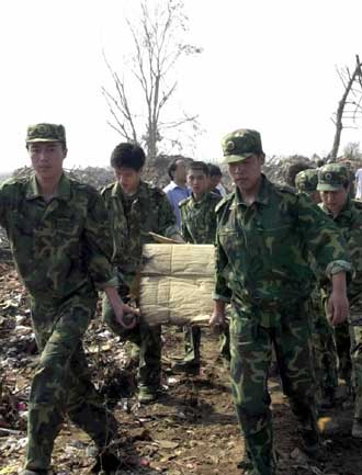 [newsphoto.com.cn] The explosion happened at about 6 pm Monday evening in the township of Wangkou. The blast demolished half of a two-storey office building 100 metres away and set fire to cars and motorcycles close to the factory building. Photographs taken by Xinhua News Agency showed rescue workers in hard hats, complete with motorized shovel combing through the charred rubble of the plant. Twenty-nine people had been confirmed dead as of yesterday, while rescue workers are still working hard to find missing bodies. Reports said that more than 100 people were injured in the blast, although only a few cases were considered serious. "I thought it was an earthquake. I was really scared. My sister and I just ran out of the house,'' Qian Yun, a 19-year-old living about 5 kilometres away from the factory, said in a telephone interview with China Central Television. Another villager, Zhang Fangjie, was working on his farm at the time of the blast. "I heard three or four explosions in a row and saw black smoke rising in the distance,'' the 40-year-old Zhang said. The explosion was caused by heat-induced ignition of gunpowder,Xinhua quoted local police as saying. The powder exploded due to the hot weather in the last few days, local government officials said. Reports from Xinhua said the factory was authorized to produce pyrotechnics by the local government in December 2000. It had passed safety inspections from local police departments. Fatal explosions still occur frequently at China's fireworks factories, despite a safety crackdown launched in early 2002 following a series of high-profile accidents. The industry employs hundreds of thousands of people, with many working at home or in small factories where most manufacturing is done by hand. In one of the worst recent cases, 80 people were killed in April 2002 in the northern province of Shaanxi, when a villager set off explosives stored in the house of a business rival.