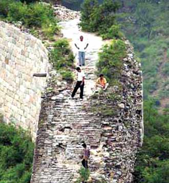 Tourists will be banned from exploring wild sections of the Great Wall in the Beijing area to protect the heritage site from damage, beginning today, August 1, 2003. [AP]