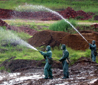 Qiqihar construction site cleaned after mustard gas leak ( 2003-08-12 09:57) (Newsphoto.com.cn)