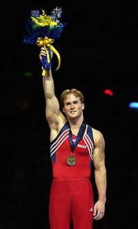 His excellent floor routine drew a score of 9.662 and left Hamm with an outside chance of glory. To a cacophony of approval from a partisan home crowd, the American produced a breathtaking high bars routine with perfect dismount, and a reward of 9.775 allowed him to edge out Yang for gold by just 0.064 of a point. Hamm finished with a total of 57.774, Yang with 57.710 a nd Japan's Hiroyuki Tomita in the bronze medal position on 57.435. With the victory, Hamm became the first American to take gold in the all-round event at a world championships and his finale was all the more commendable given his experience two years ago. Then, going into the final rotation -- on the high bar -- he blew his chance of a medal with an indifferent performance. Yet the 20-year-old has developed so much recently that there should never have been much doubt about his mental strength at the Arrowhead Pond. "It's like a dream at the moment," Hamm said. "Maybe later it will sink in. "Yes, 2001 was going through my mind because I had a disastrous high bar routine there, hitting my face. "But I tried to block the memories out when I got on the podium -- I just knew I had to hit (the high bar routine) perfectly to win." SCORING WELL