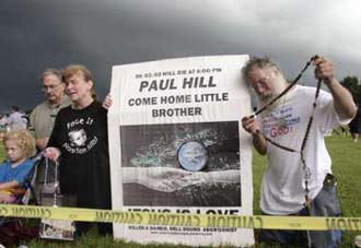 murderer Paul Hill, protest just minutes before his execution in Starke,