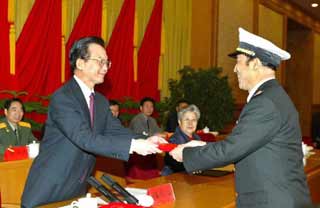 | | During a ceremony in Beijing September 12,2003, Premier Wen Jiabao issues certificates to Mou Xinsheng, general customs commissioner, and 276 other senior customs officers including six deputy general customs commissioners, and 270 first-class and second-class customs commissioners. This is the first time since the founding of the People's Republic of China in 1949 for China's General Administration of Customs to adopt a ranking system similar to the military. [newsphoto.com.cn] |